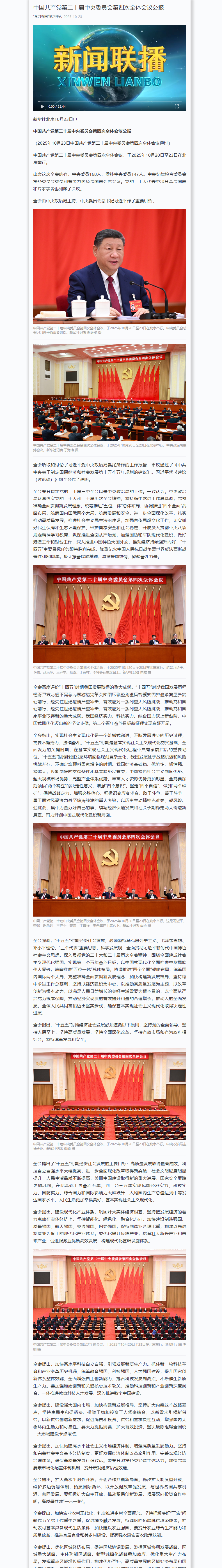 中國共產(chǎn)黨第二十屆中央委員會第四次全體會議公報